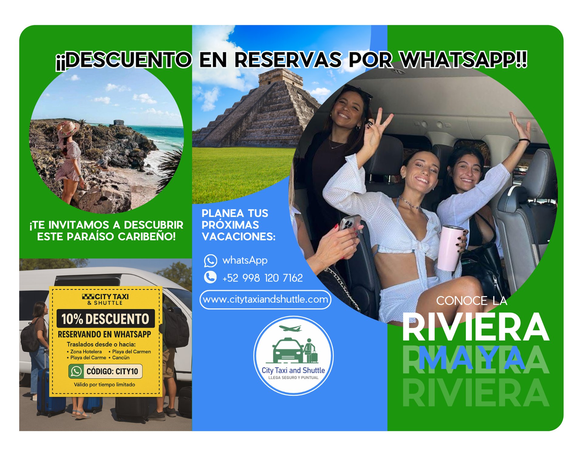 En City Taxi and Shuttle, ofrecemos un servicio de transporte privado de calidad, asegurando viajes cómodos y eficientes en la hermosa Riviera Maya. Su satisfacción es nuestra prioridad.
